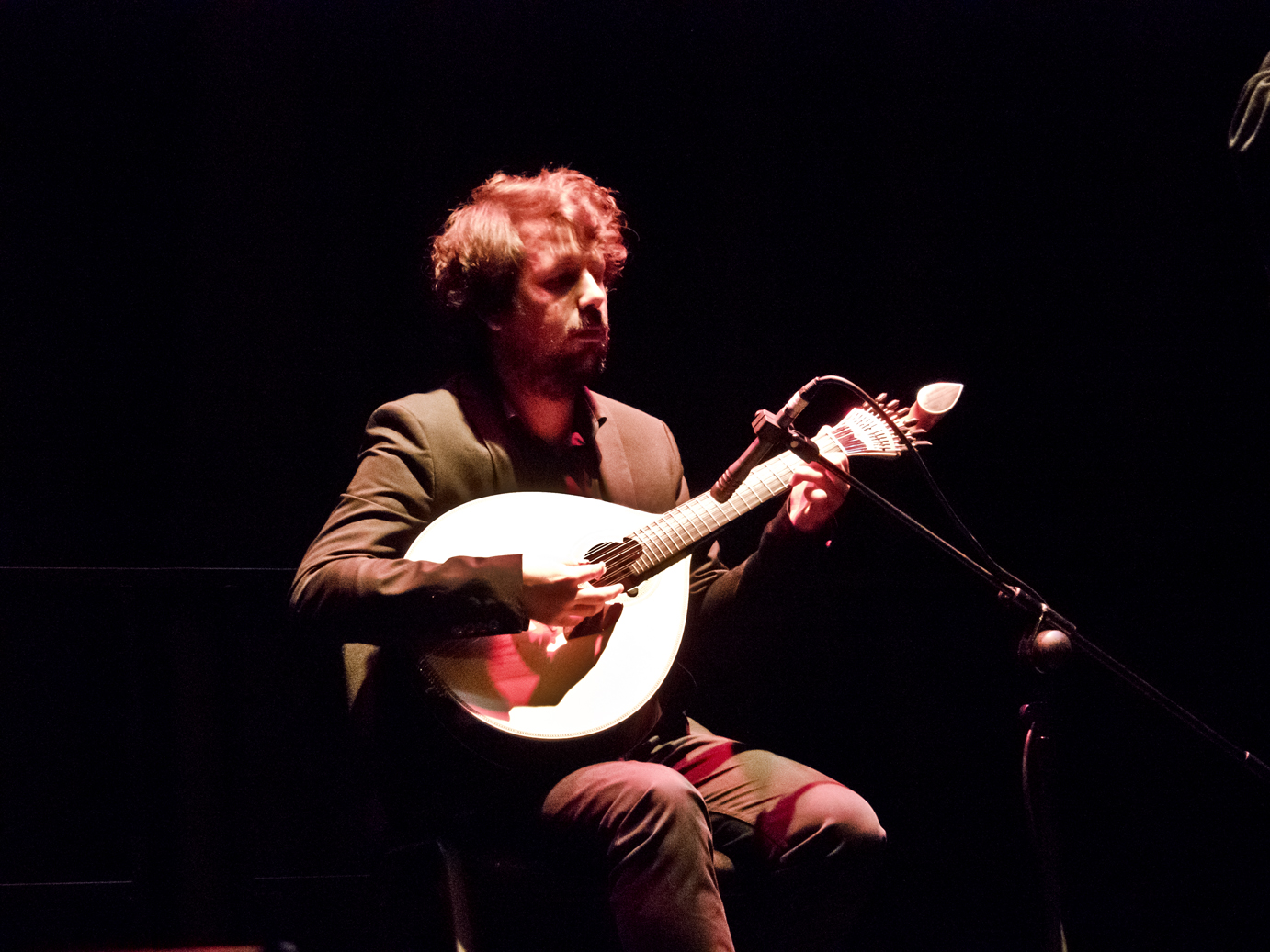 Tras un tema instrumental interpretado por los tres grandes músicos que le acompañaban: Luís Barroso y Hugo Gamboias a la guitarra portuguesa,  y Luís Carlos a la viola, apareció João Farinha en el escenario, envuelto en la típica capa de los universitarios de Coimbra, para regalarnos primer fado de la noche: ‘Corre Mondego’ que sonó así:
