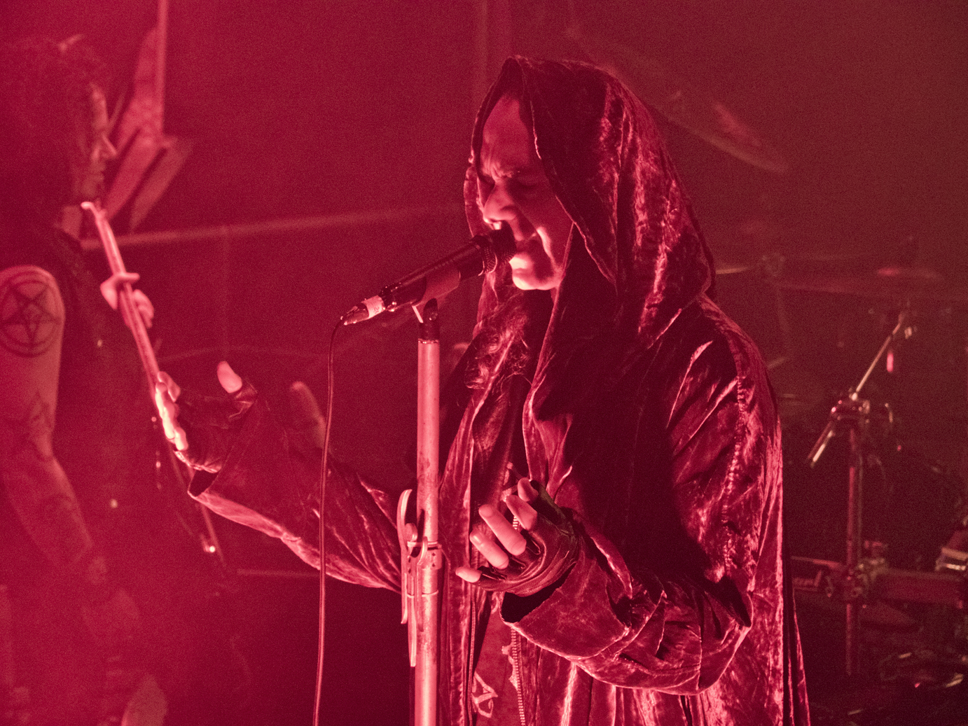 Entre fervientes aplausos, silbidos y gritos de los asistentes, los integrantes de Moonspell aparecieron en el escenario y comenzaron el concierto de la mejor manera posible: con su gran clásico ‘Opium’, temazo del que es probablemente, el disco más importante de su carrera, «Irreligious». De este magnífico y aclamado disco, del que vendieron 500.000 copias, se encuentran celebrando el vigésimo aniversario de su lanzamiento. Teniendo en cuenta, como siempre, que el sonido del micro de la cámara nunca puede hacer justicia al sonido real, así de potente comenzó el magnífico show que la banda portuguesa ofreció en la capital:
